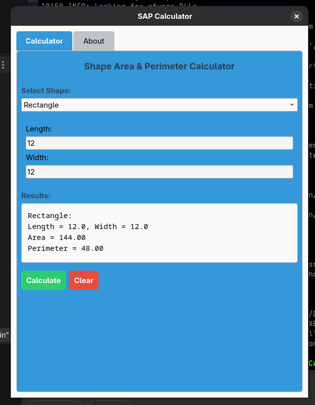 This is a simple application that will allow you to find out the area and perimeter shapes that includes: